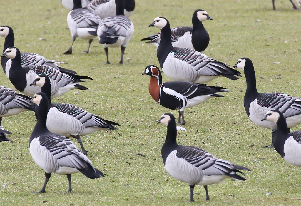 Vi skulle hen i marts måned, før der skete lidt mere. Her slog den langtidsstationære Rødhalsede Gås ved Royal Golf Club et slag forbi Kalvebod Fælled, hvor den blev set på Koklapperne den 20/3 (Bo Jensen). Det blev imidlertid ikke eneste forekomst i foråret af denne smuksak af en gås, da 3 fugle blev set sammen i Klydesøreservatet den 11/5 (Rie Jensen og Karsten Busk Laursen, fundet af Rie).